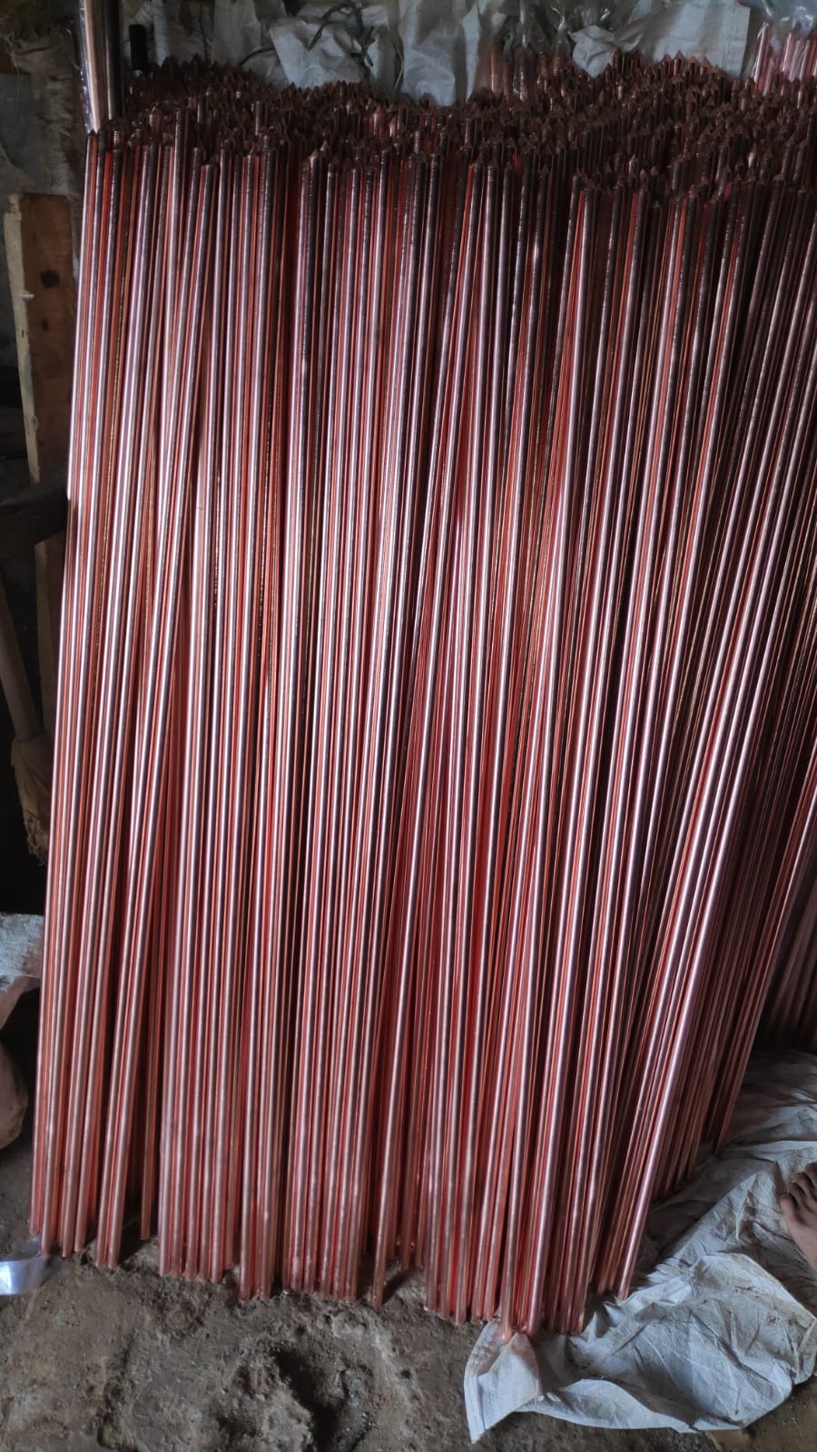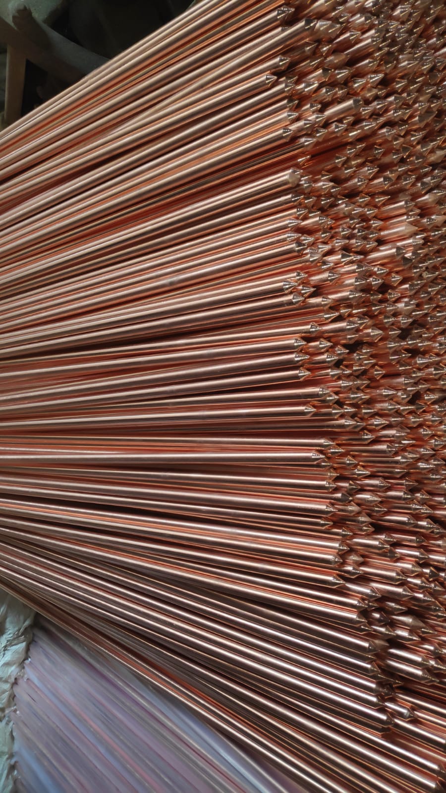 Our Copper Bonded Earth Rods are designed for superior earthing performance and long-lasting protection. Manufactured from high-tensile steel core with a uniform copper bonding through an advanced electroplating process, these rods offer excellent corrosion resistance, high conductivity, and exceptional mechanical strength. High-tensile steel core with 250 µm copper bonding for maximum corrosion resistance, high conductivity, and long service life. Ideal for earthing in power plants, telecom, industrial sites, lightning protection, renewable energy, and railways. Options up to 350 µm copper plating available.